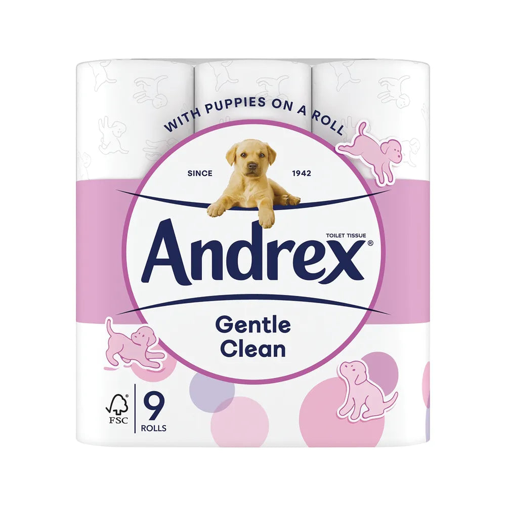 The Andrex Puppies on a roll toilet rolls are a 2-ply luxury soft tissue that provides the perfect balance of softness and strength for use in the workplace or home. Embossed puppy pattern rolls. Pack of 9 toilet rolls.