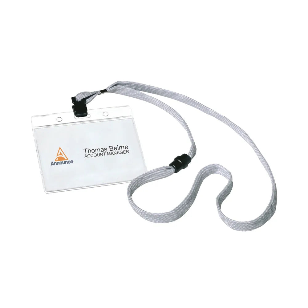 Ideal for use with security badges and passes, these Announce textile necklace and badge sets help to make sure your identification is prominently displayed at all times. The necklace is 400mm in length and has a safety release which opens if it becomes caught or trapped. This pack contains 10 name badges with textile necklaces.