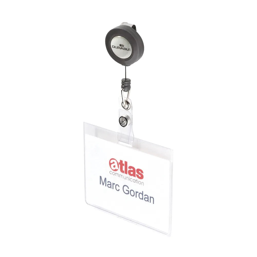 Durable Badge Reel Name Tag ID Card Holders + Inserts 60x90mm (Pack of 10) 8138/19