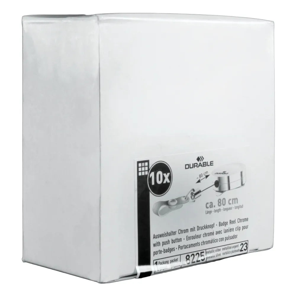Durable Secure Retractable Badge Reel for ID and Keys Chrome (Pack of 10) 8225/23
