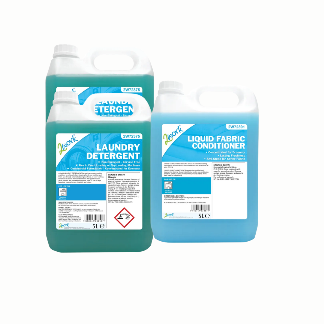Streamline your laundry routine with our dedicated washing machine chemicals subscription, specially designed for care homes with under 30 beds. This monthly supply includes 10L of high-quality laundry detergent and 5L of fabric softener, enough to comfortably handle approximately 100 loads. Perfect for maintaining fresh, clean linens and clothing, our reliable delivery service ensures your laundry needs are always met without the hassle. Maintain hygiene standards and keep your residents comfortable with our cost-effective, easy-to-manage laundry supply package. Subscribe today for consistent, convenient cleaning results!