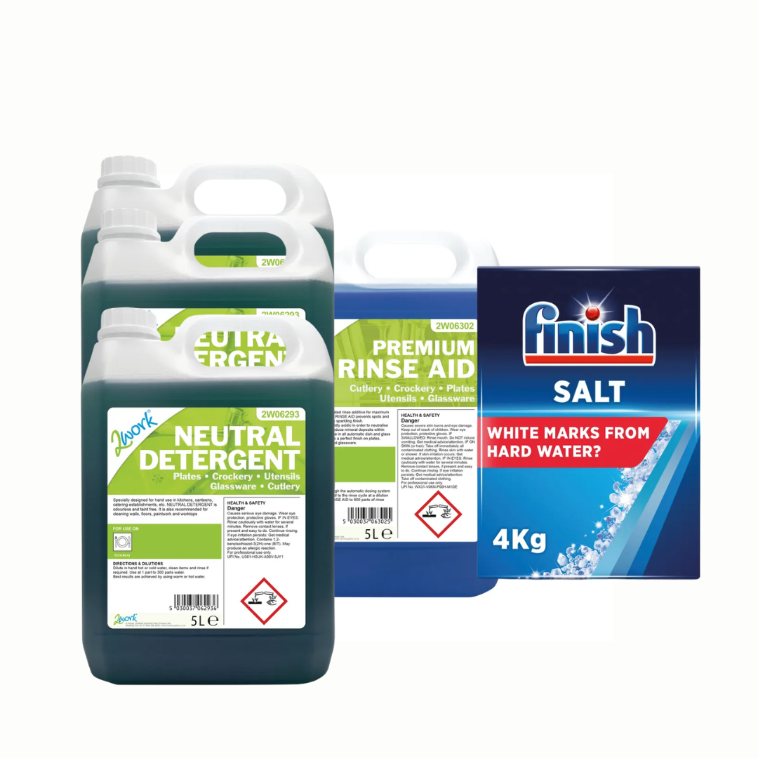 Keep your care home or small catering operation running smoothly with our medium-sized dishwasher chemicals subscription. This bundle includes 15L of premium dishwasher detergent, 5L of rinse aid, and 4kg of professional-grade salt, providing everything you need to ensure consistently clean and sparkling dishes. Ideal for facilities with 2-3 dishwashers, this easy-replenish package offers cost-effective, reliable cleaning power with regular delivery. Simplify your supply management and maintain hygiene standards effortlessly with our subscription service. Sign up today for hassle-free refills and great savings!