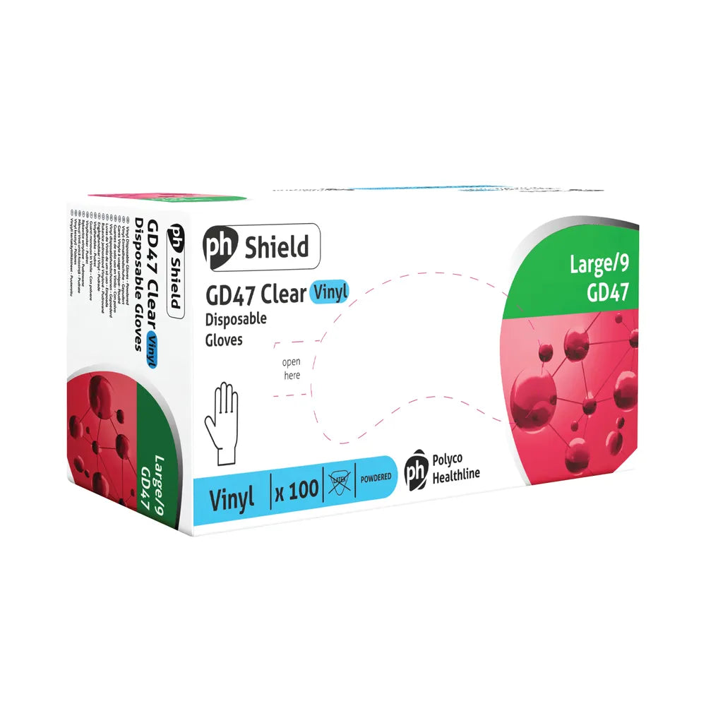 Shield Powdered Vinyl Gloves Large Clear (100 Pack) GD47