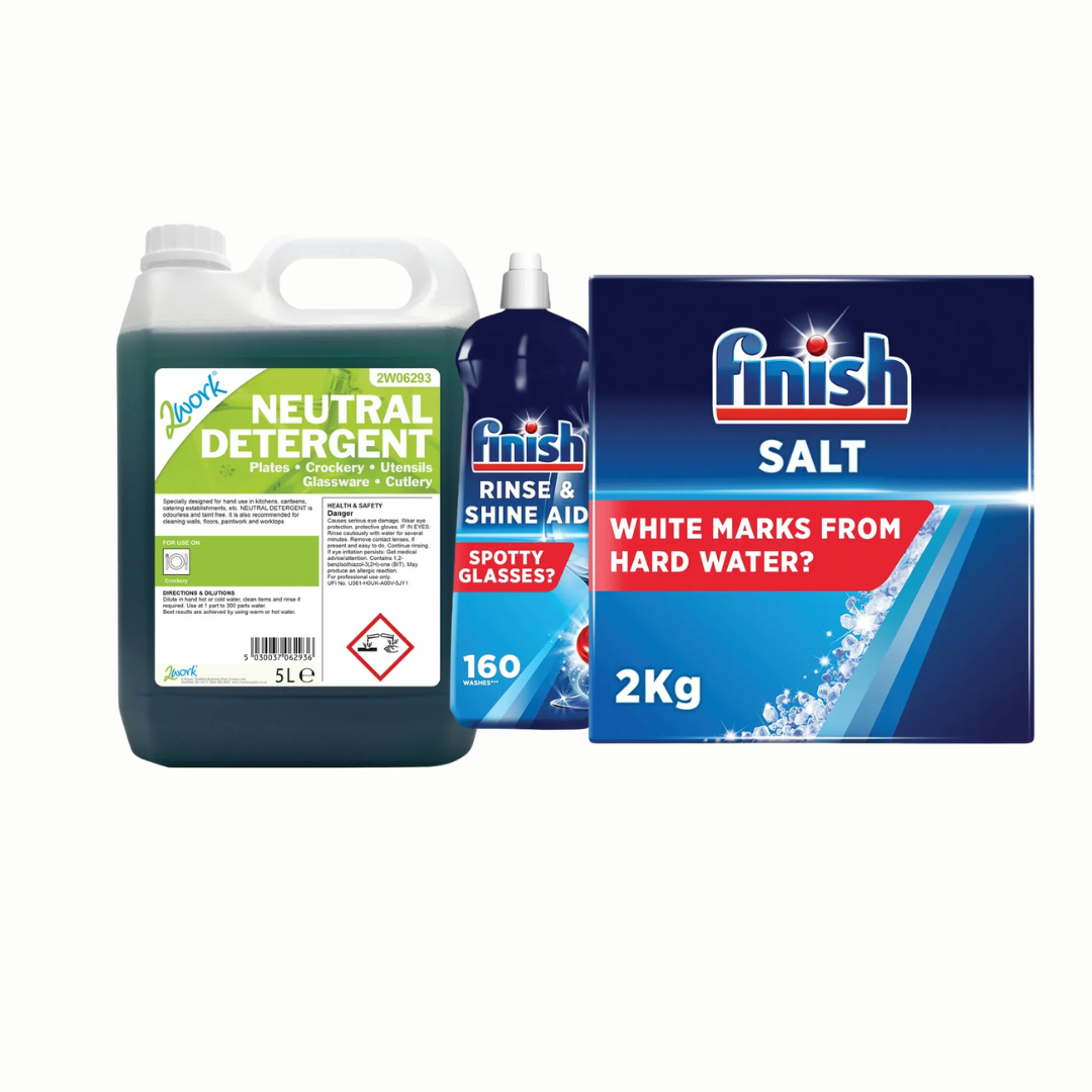 Simplify your care home's dishwashing routine with our convenient monthly subscription package. This comprehensive bundle includes 5L of high-quality dishwasher detergent, 800ml of rinse aid, and 2kg of skilled salt, all essential for maintaining optimal machine performance and hygiene. Designed for care homes and catering establishments, our chemicals deliver powerful cleaning, quick drying, and spotless dishes, making your kitchen operations more efficient. Subscribe today and enjoy reliable delivery, cost savings, and peace of mind knowing your dishwashing needs are always covered.