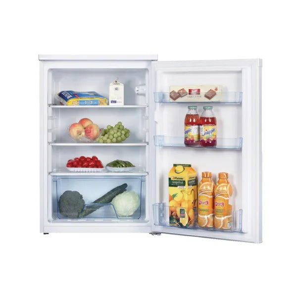 This compact fridge is designed to fit under the counter and features 2 adjustable glass shelves and a large capacity salad drawer. The fridge also features a reversible door and has a net capacity of 133 litres. This white fridge measures W553 x D574 x H845mm.