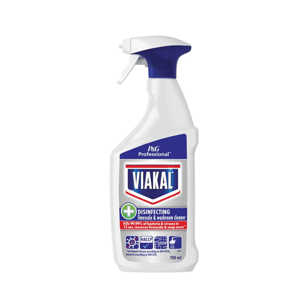 Viakal professional disinfectant, limescale and washroom cleaner spray is a ready to use spray effective for cleaning and disinfection of washroom surfaces. Kills 99% of bacteria and enveloped viruses; recommend 15 seconds contact time to kill bacteria and enveloped viruses. Cleans and disinfects in one go. Highly effective on sanitary soil like soap residues, limescale and body fats. Helps to prevent limescale, soap scum and water build-up, even in very hard water areas. Leaves a long-lasting shine and fresh perfume.